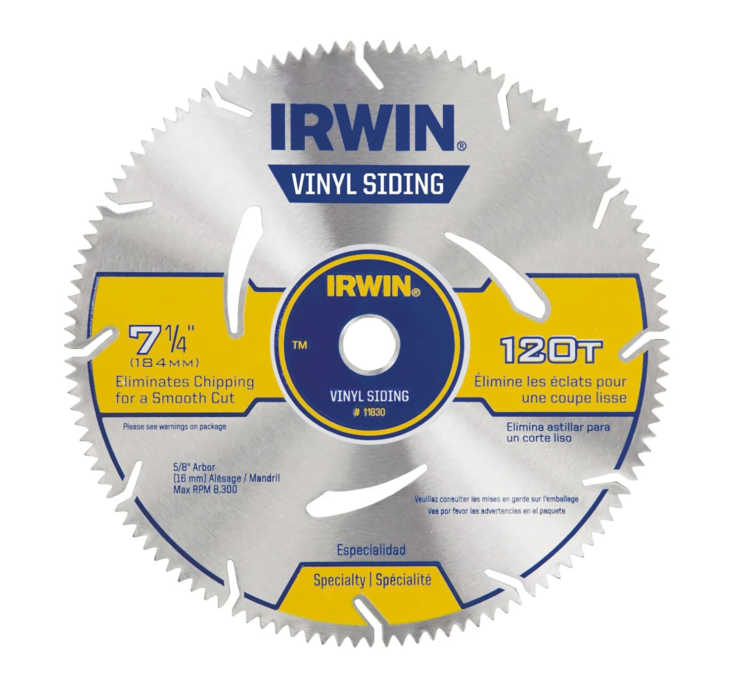 IRWIN Marathon vinyl siding 7-1/4-in 120T saw blade.