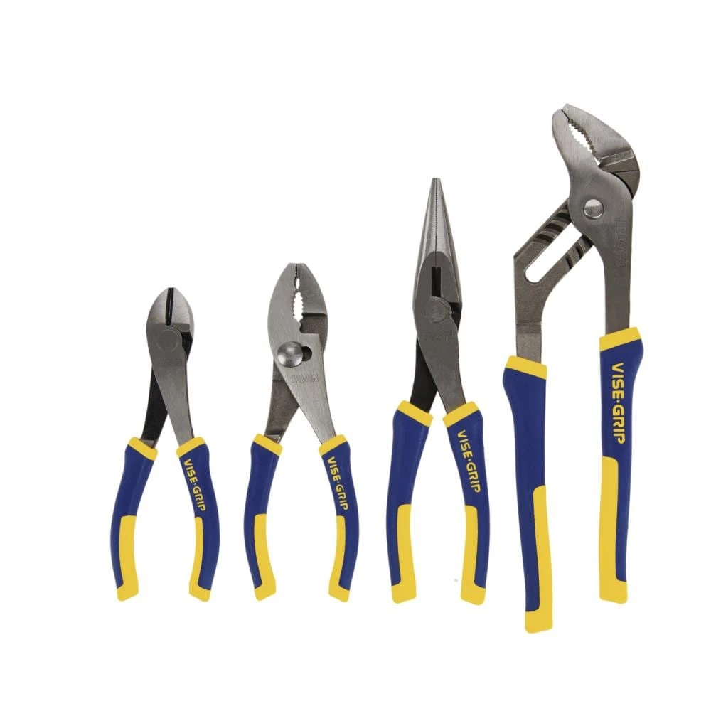 - 4-Piece set includes 1 each of the following: 6-in Diagonal, 6-in Slip Joint, 8-in Long Nose, 10-in Groove Joint