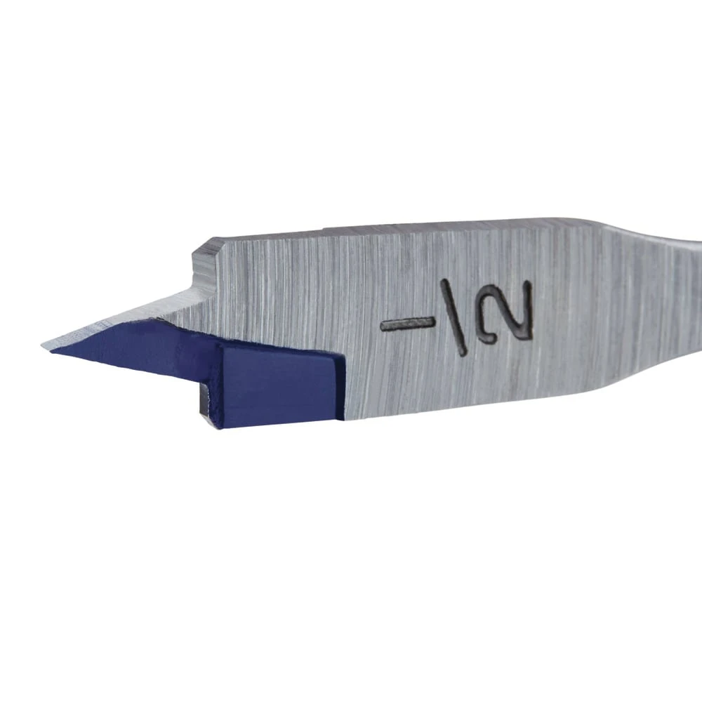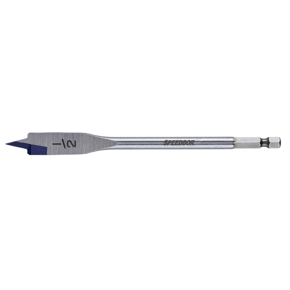 The improved SPEEDBOR Spade Bits now last 2X Longer and cut 2X Faster. Next-generation SPEEDBOR® Spade Bits feature a chamfered cutting edge for durability in cutting wood and optimized point tip that is wider and longer than previous IRWIN spade bits to minimize splintering and control speed. Patented Blue-Groove cutting edge allows for a large cutting area for aggressive removal of wood chips and fast drilling.